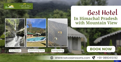 Tatva Bir Resorts offers stunning Dhauladhar views, spacious rooms, delicious local food, and easy access to paragliding and nature trails in Kangra Valley.